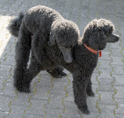 Kara befindet sich noch auf Augenhöhe mit Titus, einem Coton de Tuléar. Diese anerkannte FCI-Rasse stammt ursprünglich aus Madagaskar, der Rassestandard wird aber vom französischen Zuchtverband bestimmt. Wie übrigens auch der Pudel, dessen Ursprung ebenfalls aus Frankreich kommen soll, auch wenn das noch strittig ist.